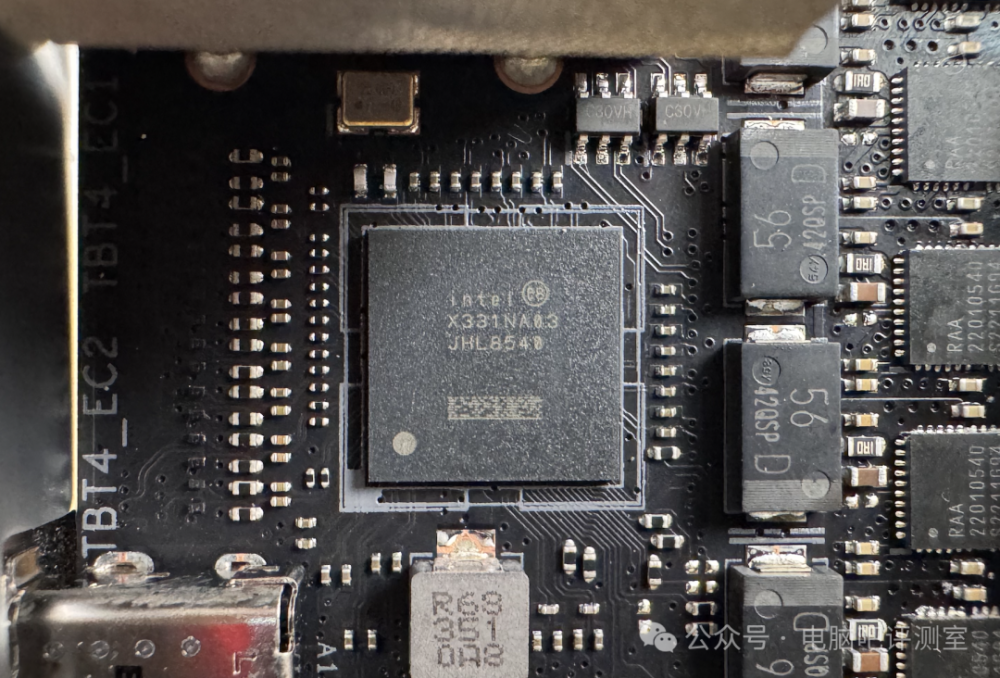 两个雷电4接口由英特尔JHL8540提供支持,采用的是PCI-E3.0 X4,提供两个雷电4接口,并支持DP1.4a。
