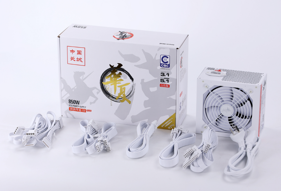 电源方面,选择的是一款国风属性的白色电源,电源大厂长城旗下的新品泱泱华夏·汉 GW-850HX ATX 3.1全模组白色电源。全白配色搭配国风元素外包装,整体质感表现优秀,辨识度也高。