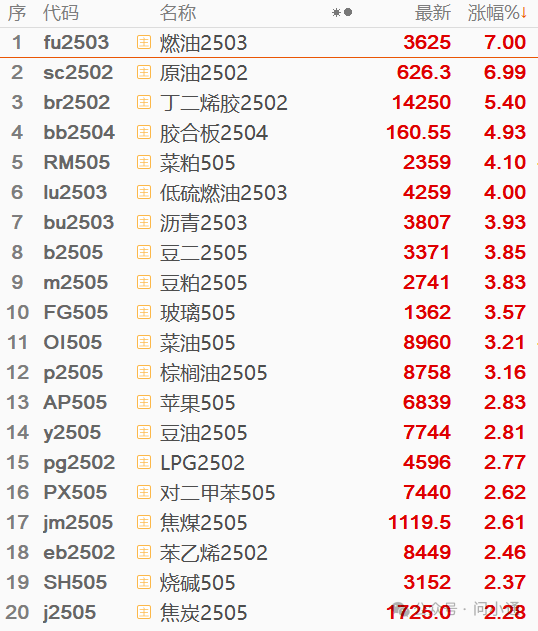 由于原油的用途较广,因此原油的价格也牵动着世界经济,故而也被称为“通胀之母”。今天原油大涨,也带动了其他期货品种的强势上涨,而且股期联动,今天最好的板块就是采掘行业,作为传统能源的替代,新能源中的能源金属也有所表现。
