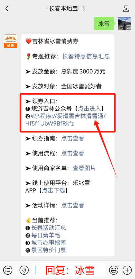 聊天对话框处回复【冰雪】也可获取