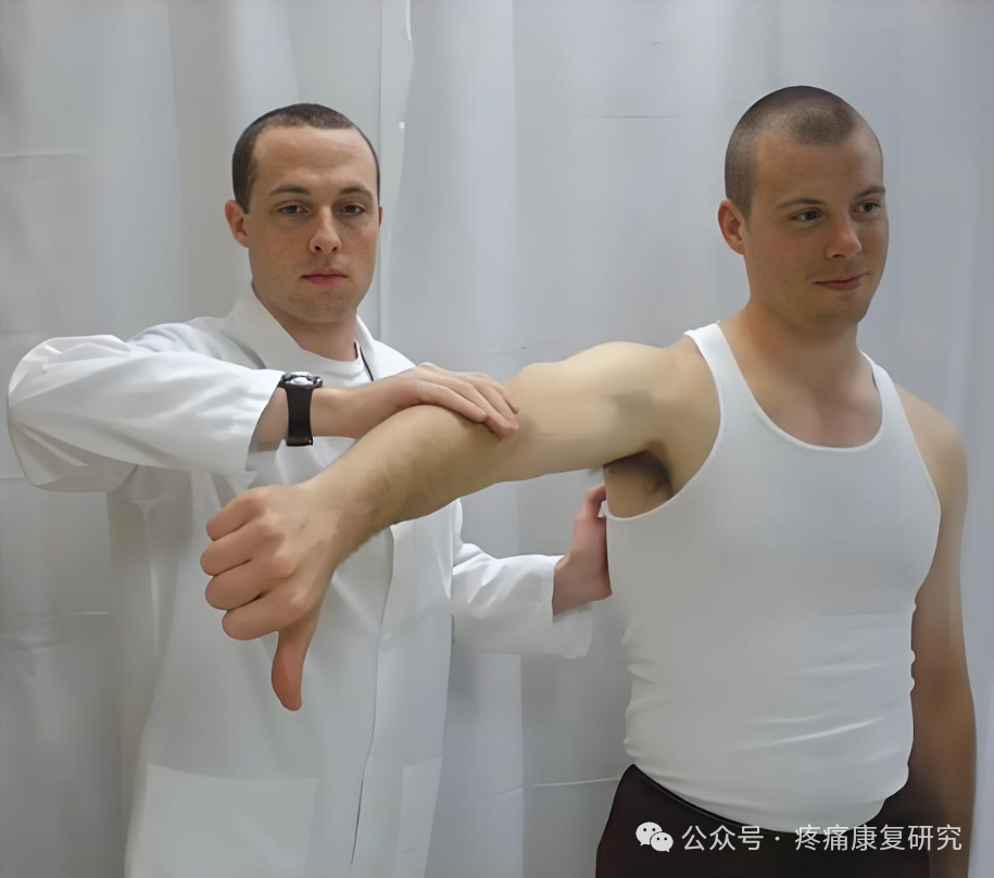 压痛测试:按压肩部肌腱位置,会出现明显压痛,以此来确定病变位置。