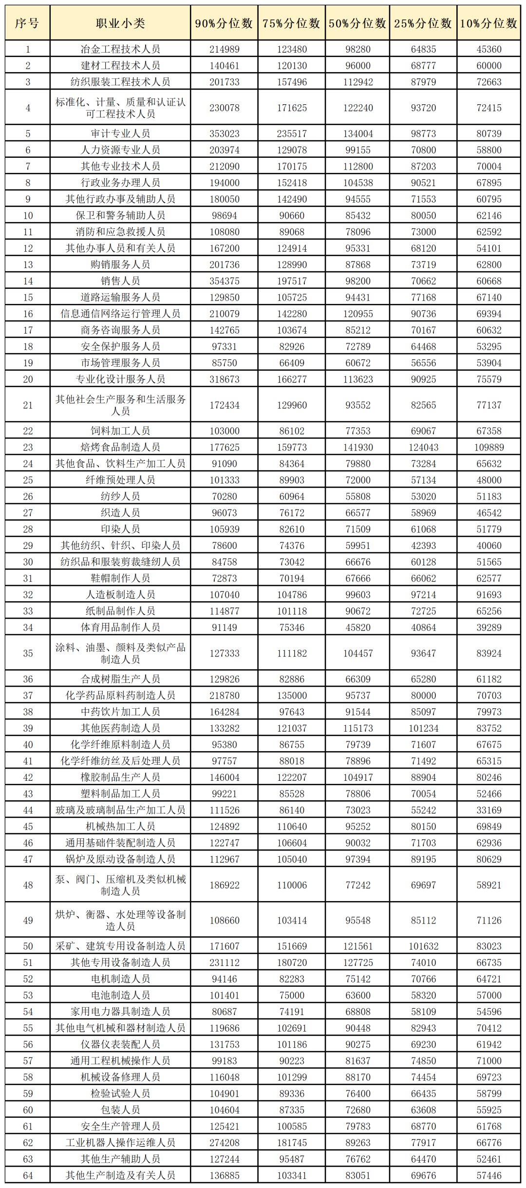 制造业企业市场工资价位
