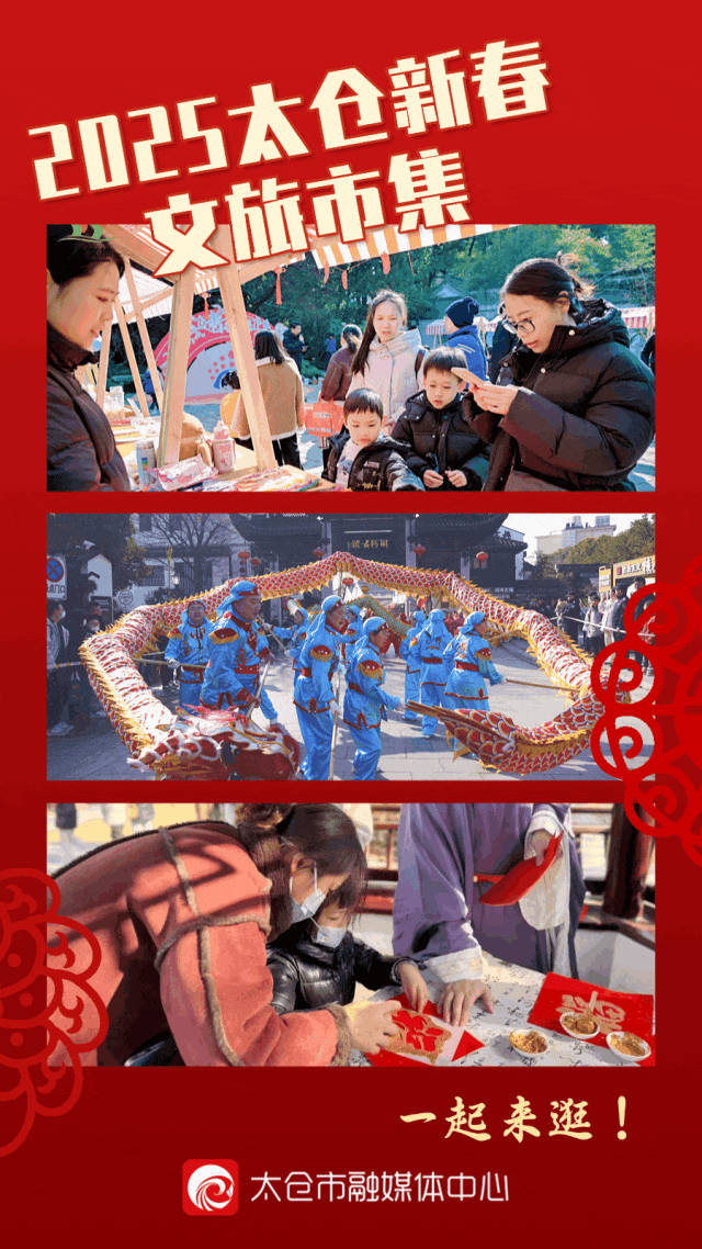 舞龙队伍一边表演,一边穿越古镇,而古镇也已经装点一新,郑和宝船、千福字板、祈福树等装饰令人眼前一亮,市民游客纷纷驻足留影。热闹的市集上,游客摩肩接踵,忙着品尝美味小吃,体验手工和非遗。