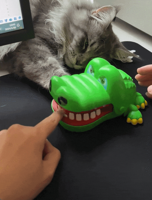 哪怕是玩具机关被触发,咬住了手手,莱米也是一脸淡淡的。