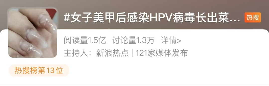 由于美甲工具无法“一人一套”,因此存在交叉感染的可能。但甲旁、甲周长出的“瘊子”,在医学上被称为寻常疣,这与宫颈、外生殖器等引起的“菜花”相比,感染形式、临床表现、后果等均不同,爱美人士不必过度恐慌。