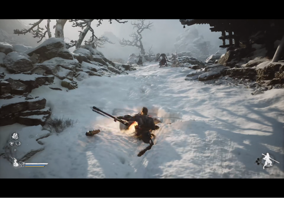 这张截图是2021年8月20日发布的新PV。这个时候《黑神话》已经换新的UE5引擎开发了。我还记得这个PV出来时候有很多人(包括我)震撼于猴子脚下无比真实的雪痕迹实时演出。